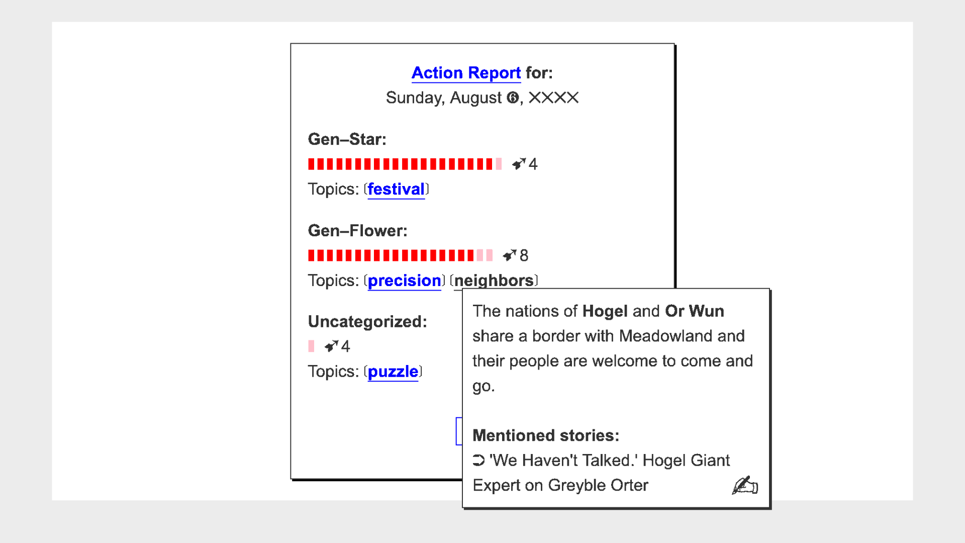 You are Editor-in-Chief of the most popular news website in the nation of Meadowland. Each day, you get to decide of the all-important "above the fold" layout, which will have dramatic consequences for your readership, the nation, and perhaps the world. Each playthrough takes around 5-10 minutes.
